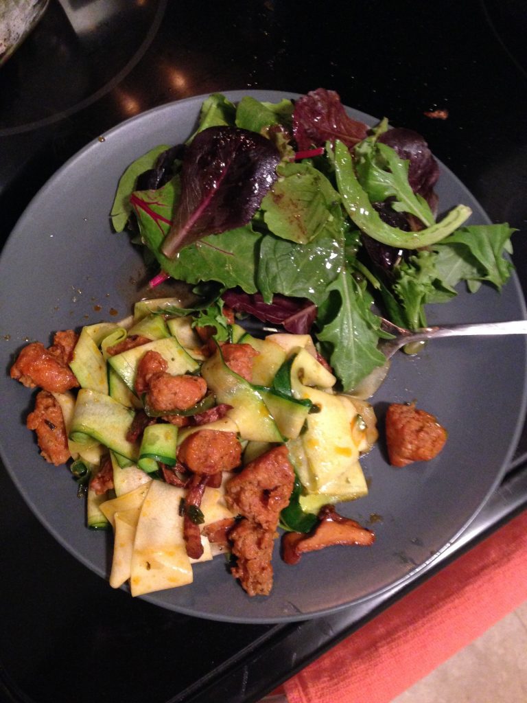 I post pics of my cooking all the time on Instagram, so I figured I should start blogging about my recipes and such. Today’s experiment is a paleo-esque take on a traditional Pappardele pasta dish. This recipe is very improvised, so feel free to adjust to your preferences. I usually cook for myself or one other, so quantities are usually enough for me to have left overs.